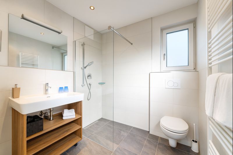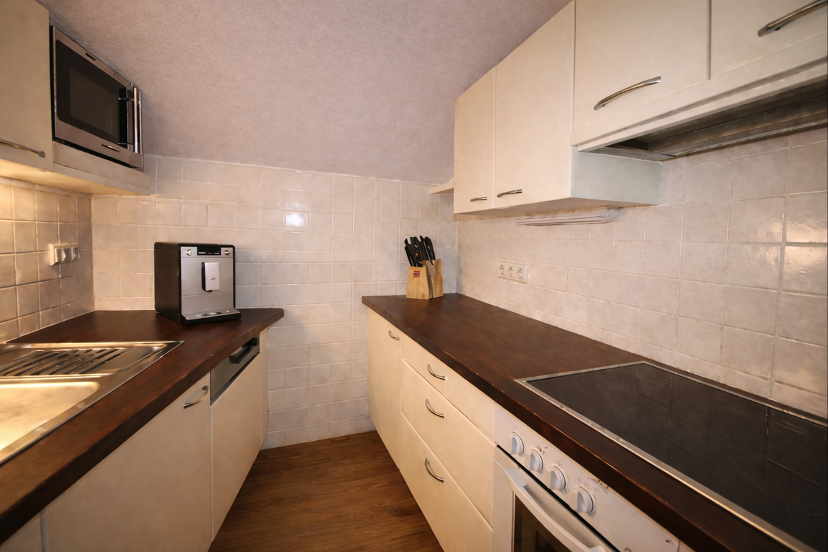The kitchen in this apartment is located in a separate room. It is fully equipped with everything you need for your holiday, including a fully automatic coffee machine with enough coffee for the entire week. All rooms are equipped with underfloor heating. Bed linen, towels, and Wi-Fi are provided free of charge.