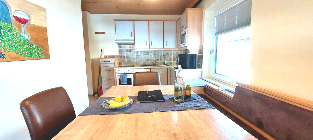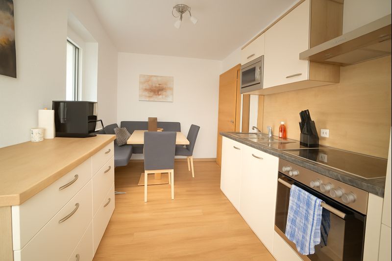 In the cozy kitchen-living room, you will find everything you need for your holiday, including a fully automatic coffee machine with enough coffee for the whole week. Bed linen is provided free of charge. We are happy to offer a bread delivery service right to your apartment door (bread rolls at an additional charge). A free baby cot is available on request.